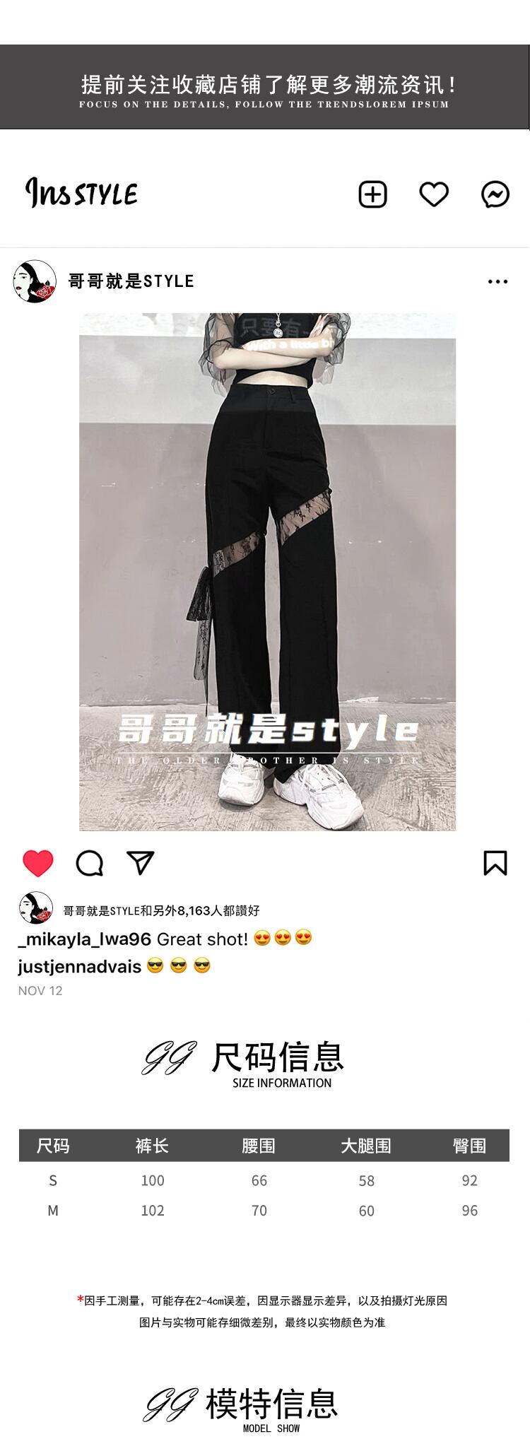 パンツ サマーレースルーズブラックワイドレッグハイウェストウェストカジュアル 夏物 ワイドパンツ ステッチ Brother_is_Style65399518054