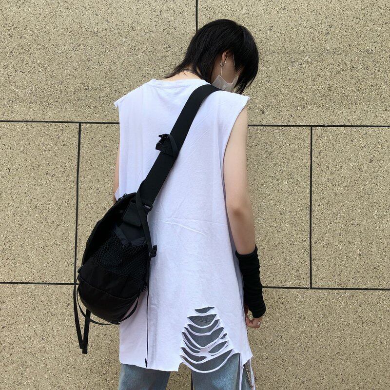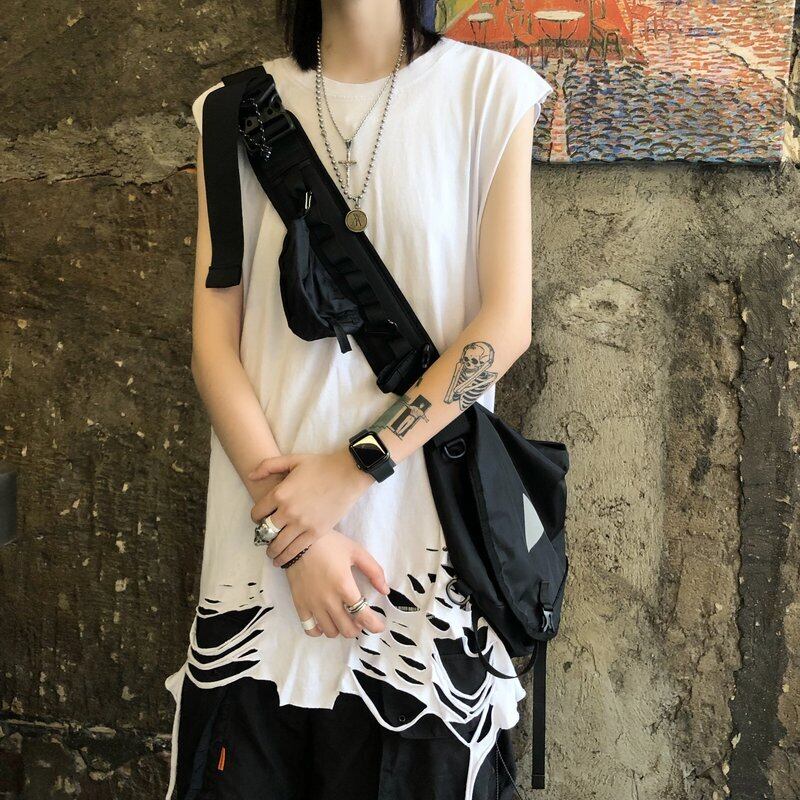 サマーノースリーブホワイトルーズTシャツ レディース ストリート 夏物 Brother_is_Style13721386827