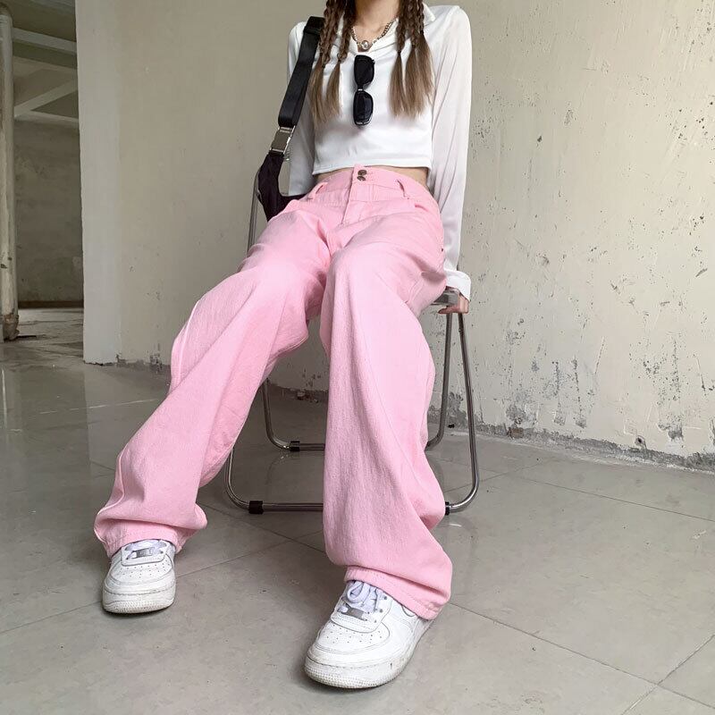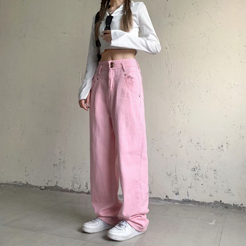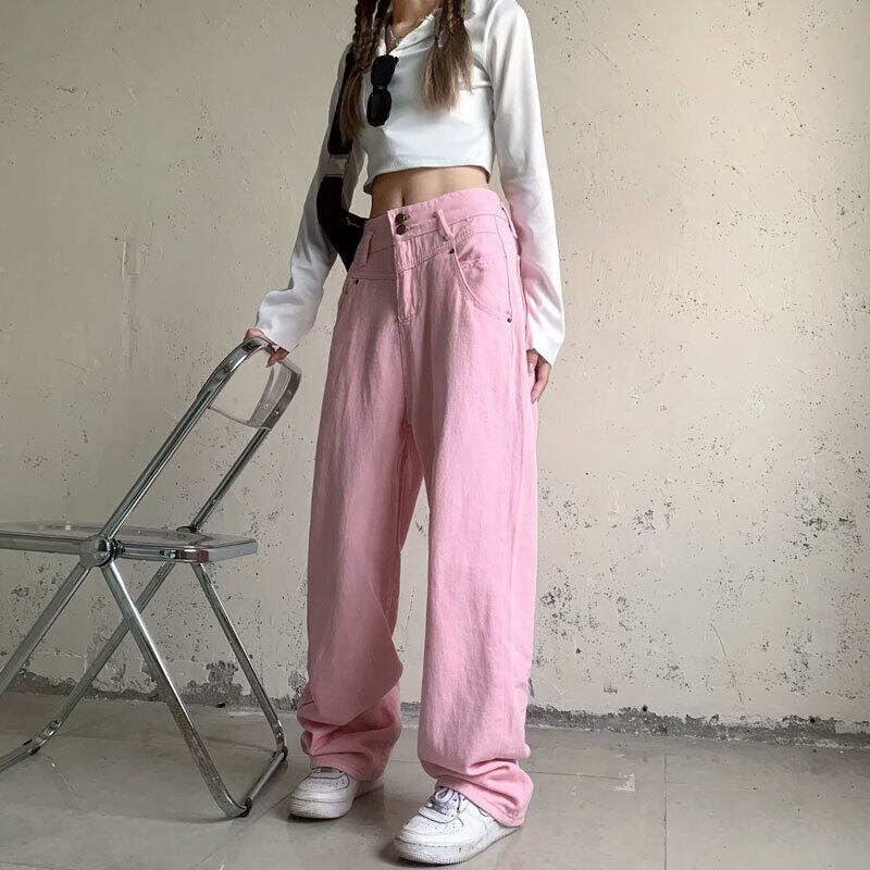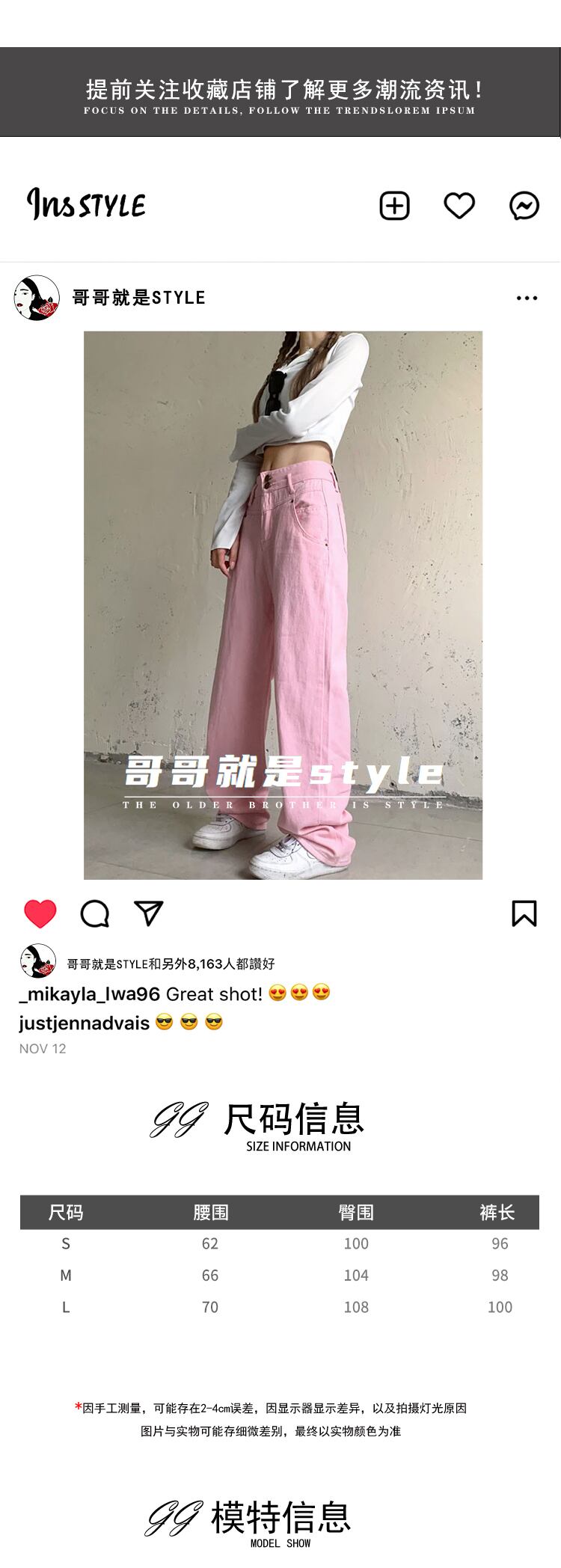 パンツ オータムスタンダードハイウェストウェストルーズジーンズ ピンク レトロ 秋物 Brother_is_Style95250562835