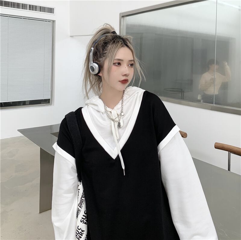 オータムスタイルフードセーター ジャケット ルーズトップス ロング かわいい 秋物 Brother_is_Style60191379660