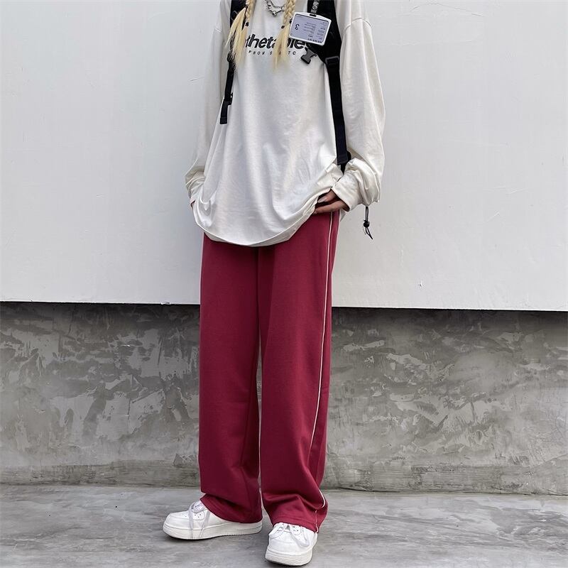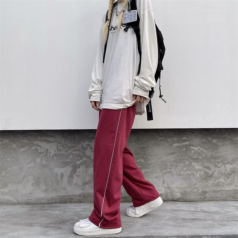 スタンダードパンツ オータムレッドハイウェストウェストカジュアルルーズ レトロ 秋物 Brother_is_Style50232355537