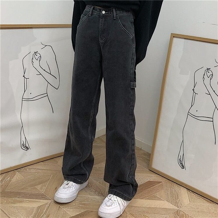 ブラックパンツ オータムスタンダードルーズハイウェスト薄手ジーンズ レトロ 秋物 Brother_is_Style43913626061