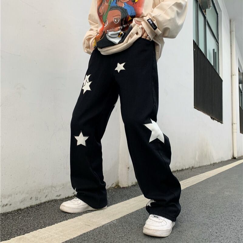 パンツ オータムプリントジーンズ ルーズウェストスキニーワイドレッグ ストリート 秋物 ワイドパンツ Brother_is_Style67718013885