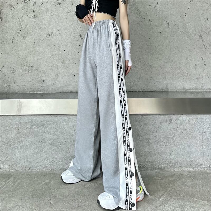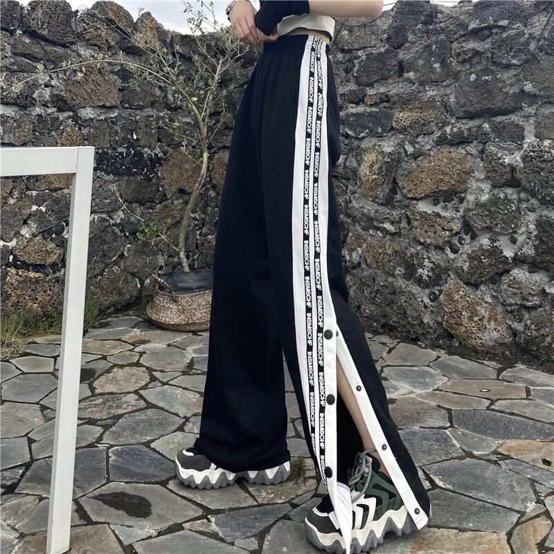 ブラックパンツ オータムカジュアルルーズハイウェストウェストワイドレッグ ストリート 秋物 ワイドパンツ Brother_is_Style61961156541