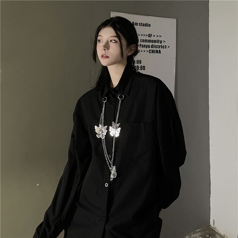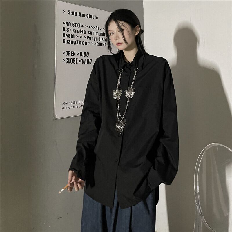 ダークスタンダードシャツ レディースオータムジャケット ブラックルーズ ロング レトロ 秋物 Brother_is_Style22603240011