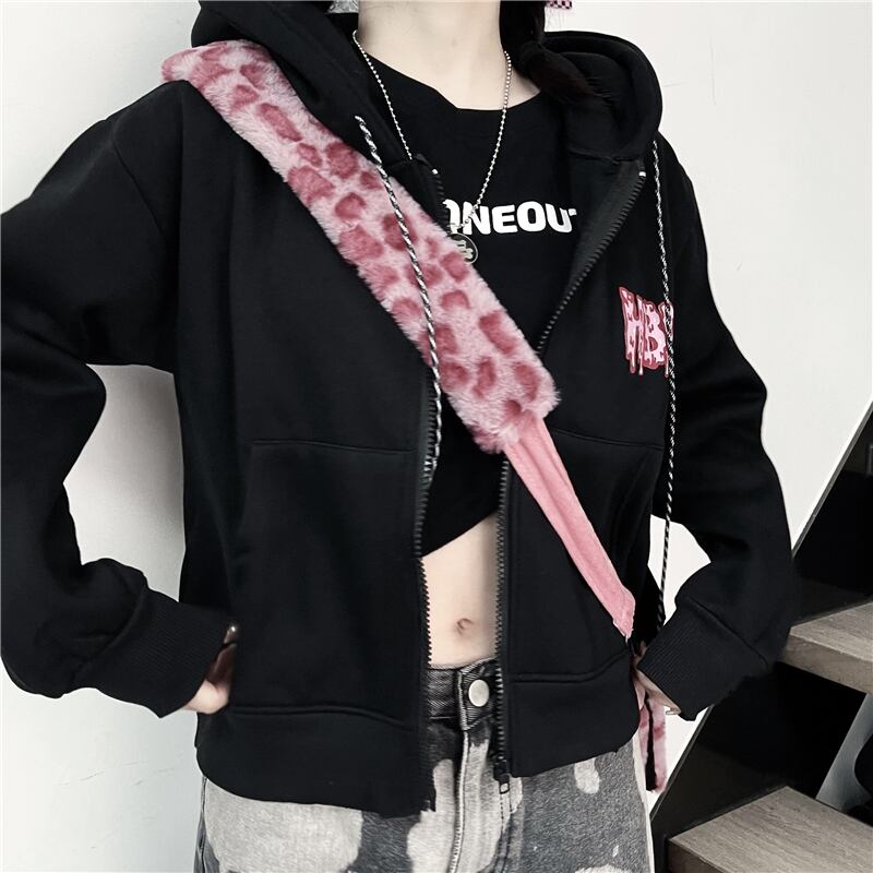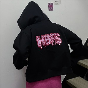 オータムプリント柄ショートフードセーター コート ルーズカーディガントップス レディース ロング 秋物 Brother_is_Style75021986490