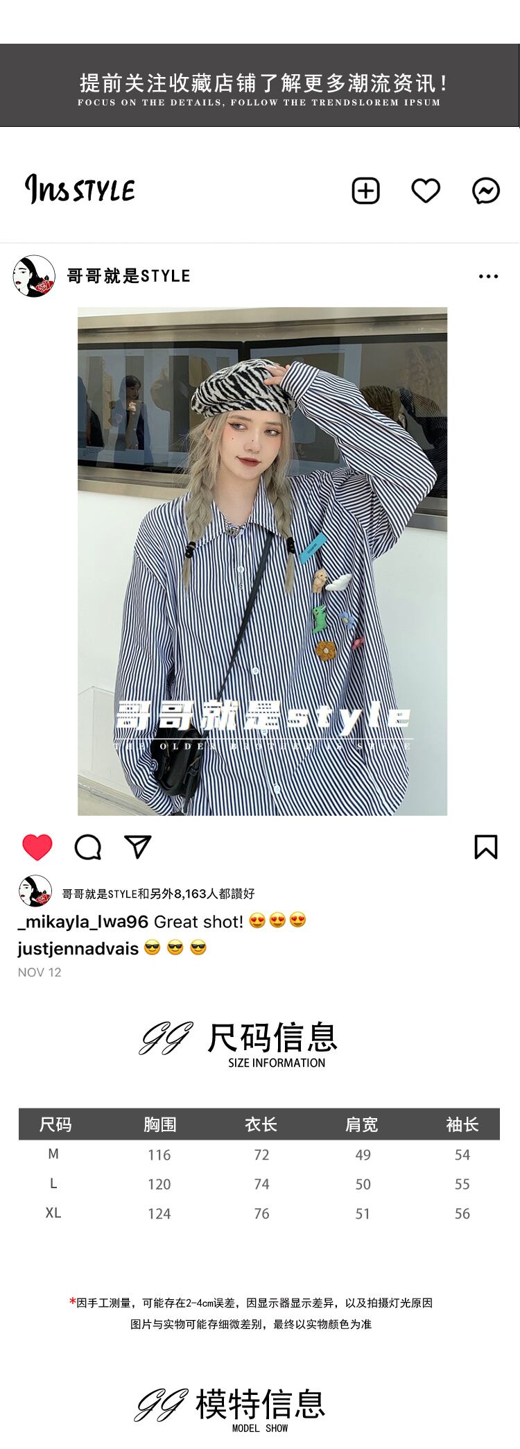 シャツ オータムスタイルストライプジャケット ルーズカジュアルトップス ロング 秋物 Brother_is_Style79220775968
