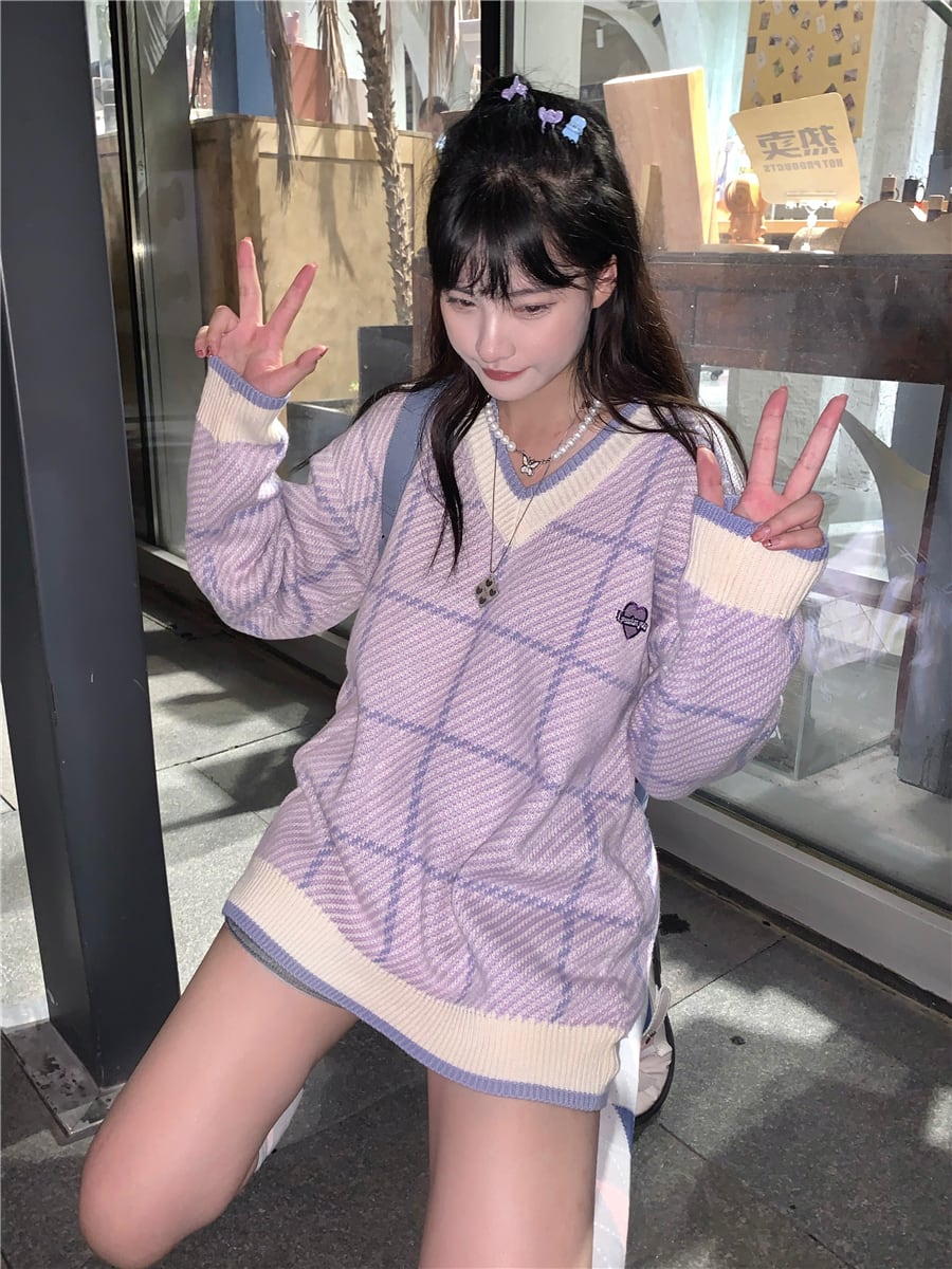 オータムプルオーバー ジャケット ルーズニットトップス レディース ロング 秋物 パープル Brother_is_Style9967291298
