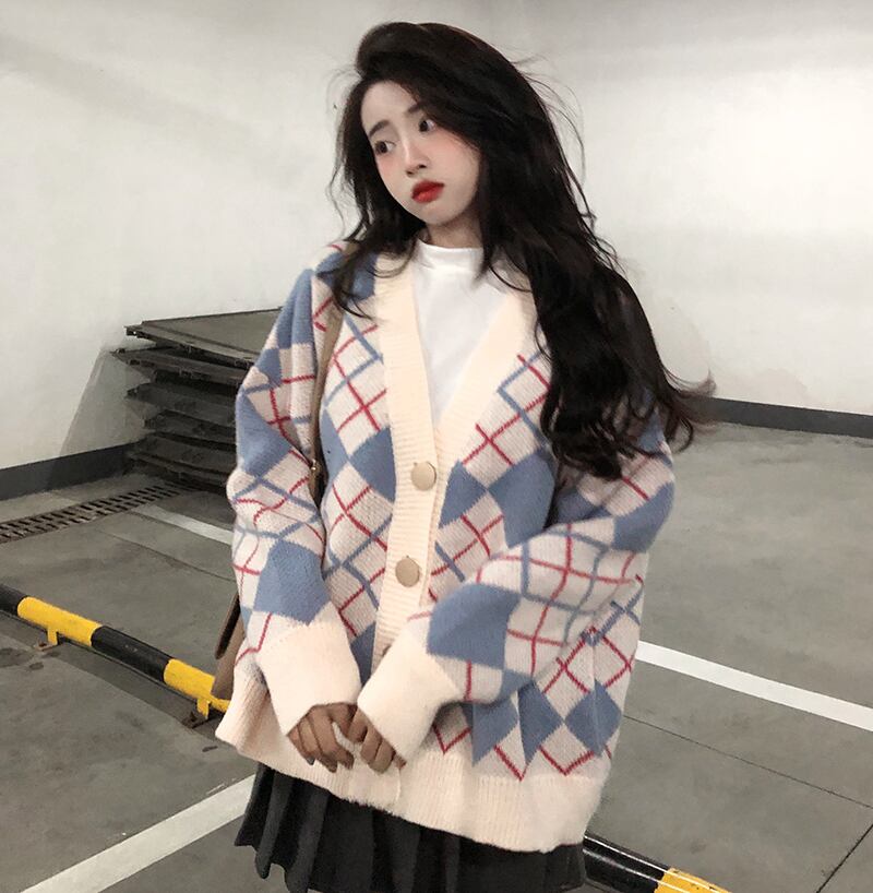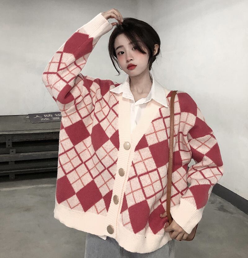 セーター レディースオータムスタンダードジャカードニットジャケット ルーズシャツ カーディガン ロング レトロ 秋物 Brother_is_Style43441206217