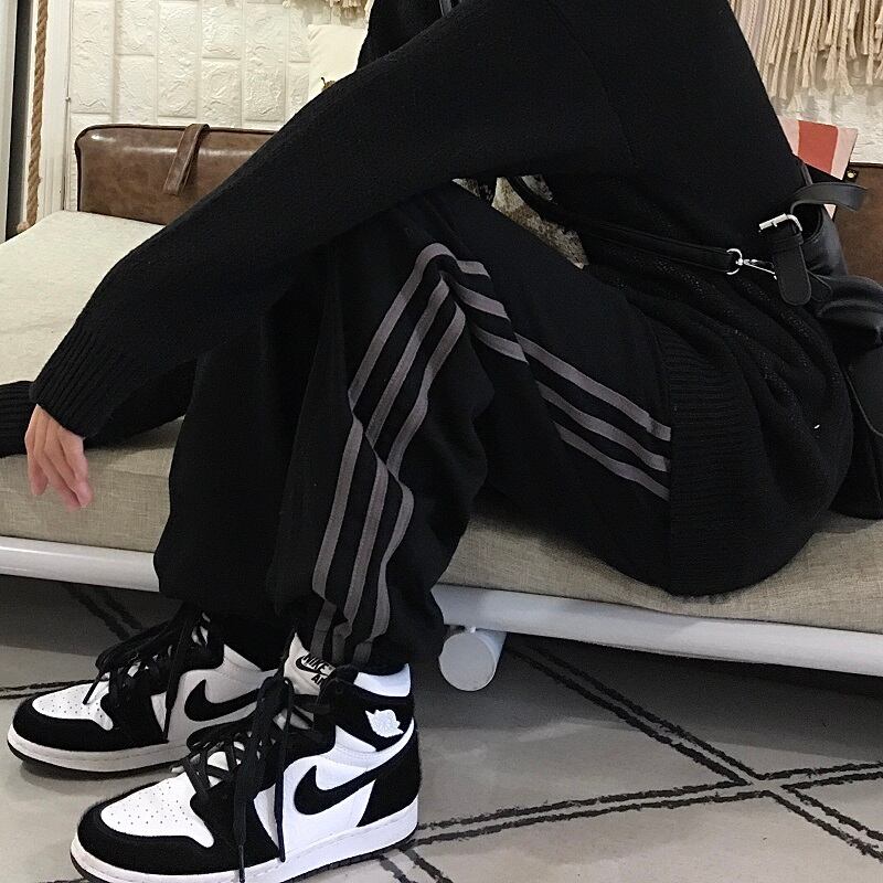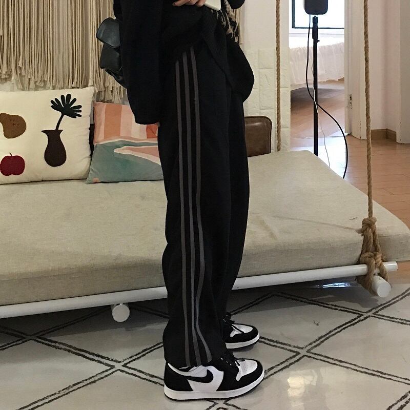 パンツ オータムスタンダードブラックカジュアルルーズハイウェスト レトロ 秋物 Brother_is_Style92837813472