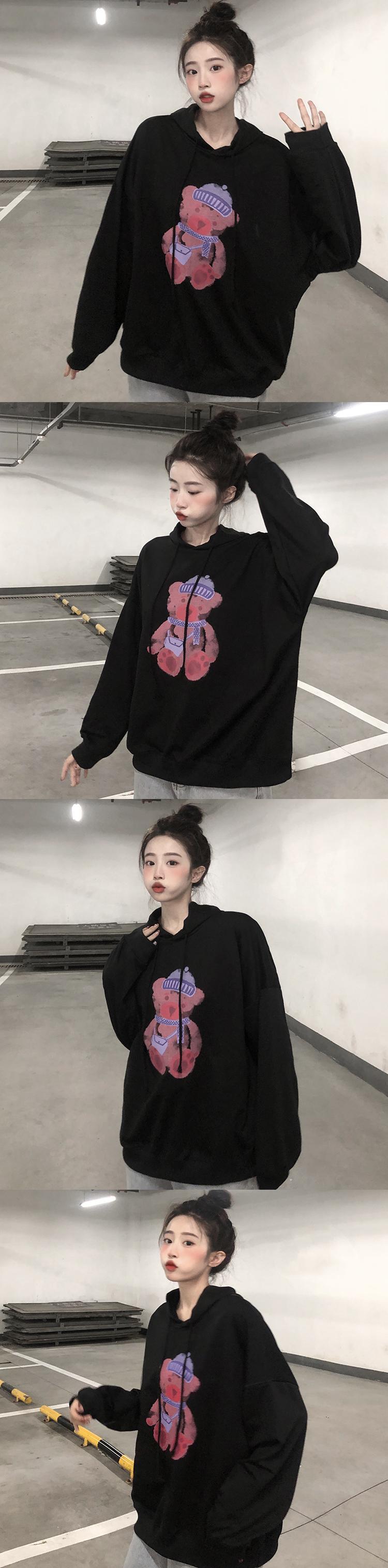 色:白い楽しいクマのセーター,ブラックファンベアスウェットシャツ