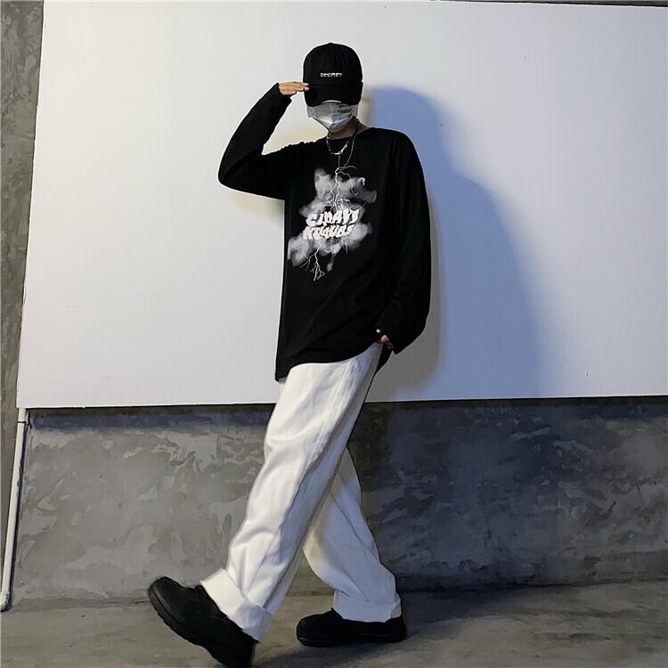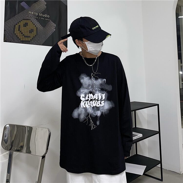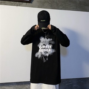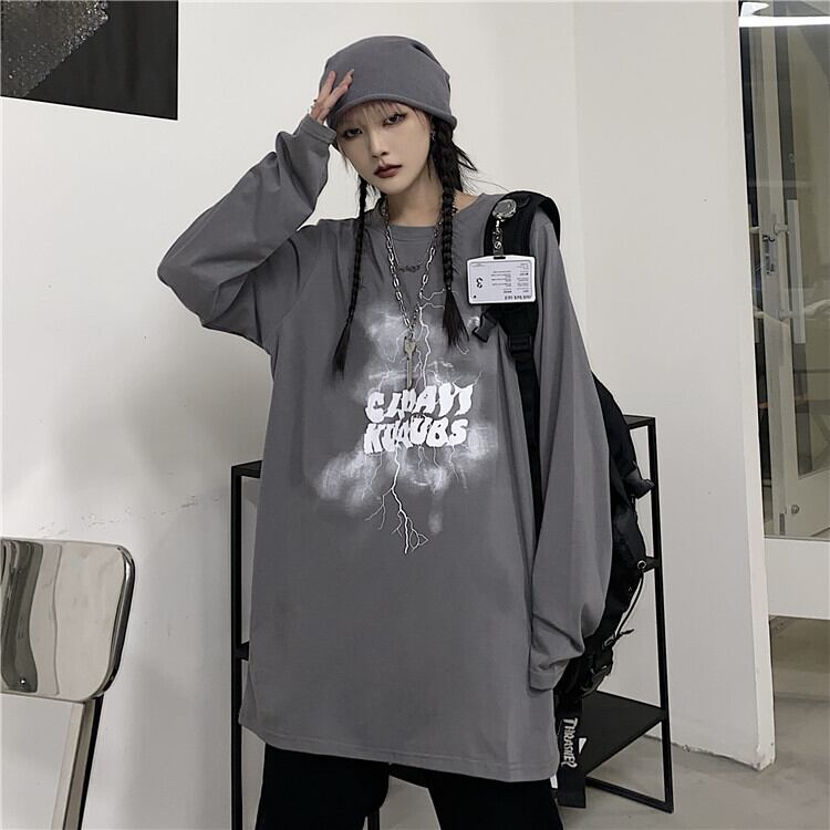 オータムスタンダードラウンドネックプリントTシャツ シャツ ルーズトップス ロング レトロ 秋物 Oネック Brother_is_Style67479061047