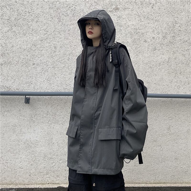 オータムスタンダードフードジャケット ルーズ ロング レトロ 秋物 Brother_is_Style51581541079