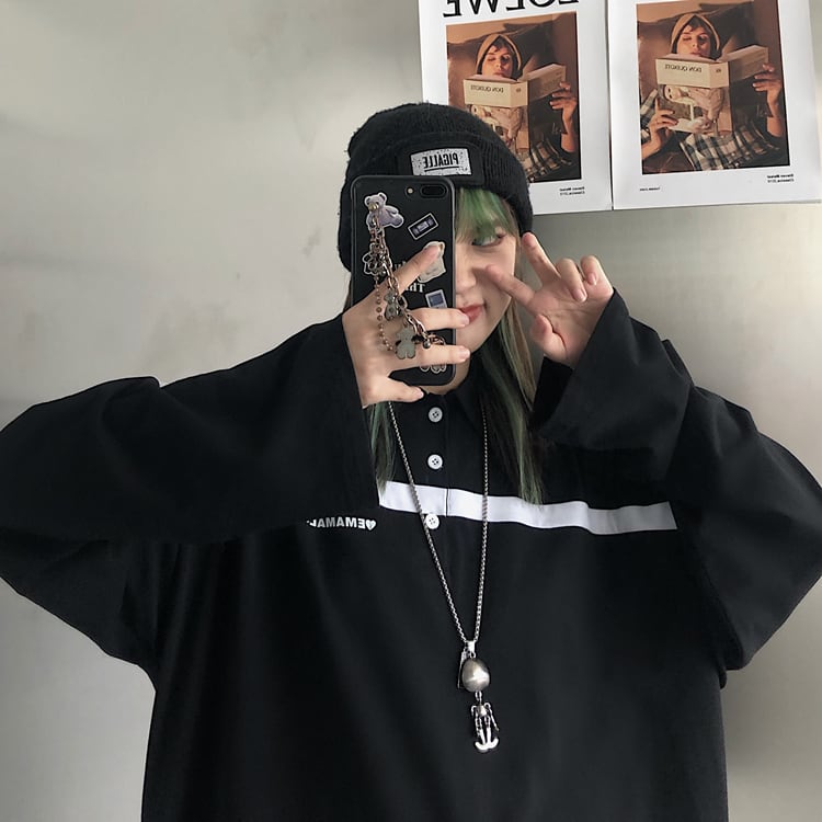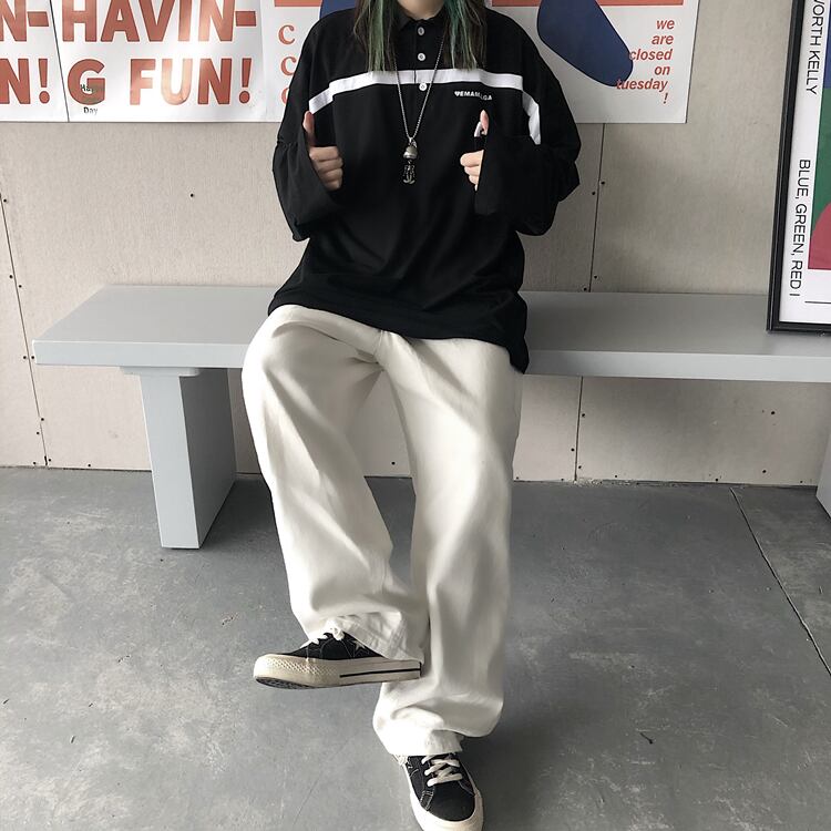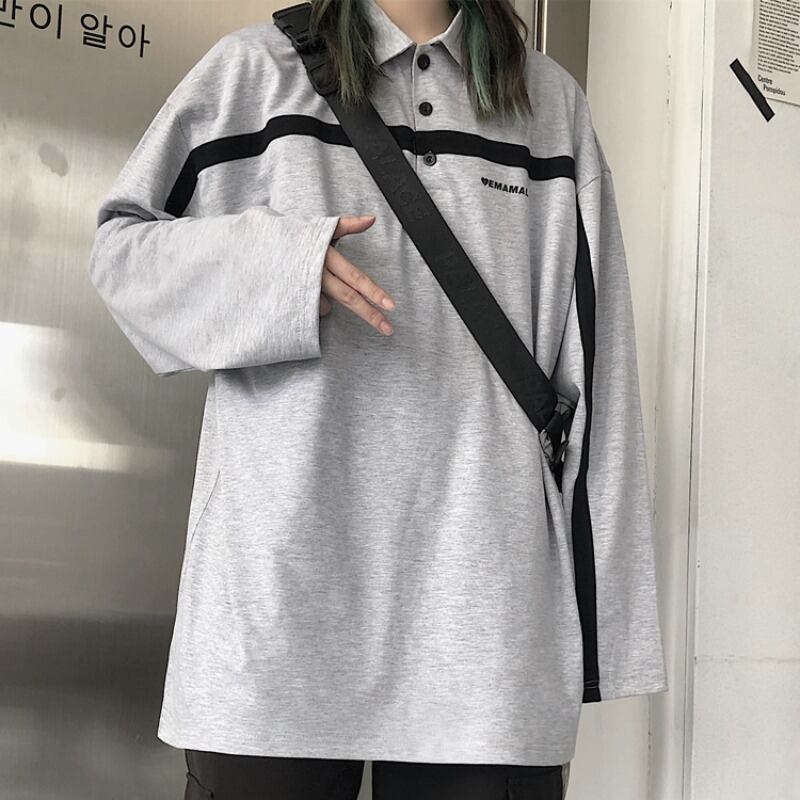 オータムスタンダードカラートップス ルーズTシャツ ロング レトロ 秋物 ステッチ Brother_is_Style27403488513