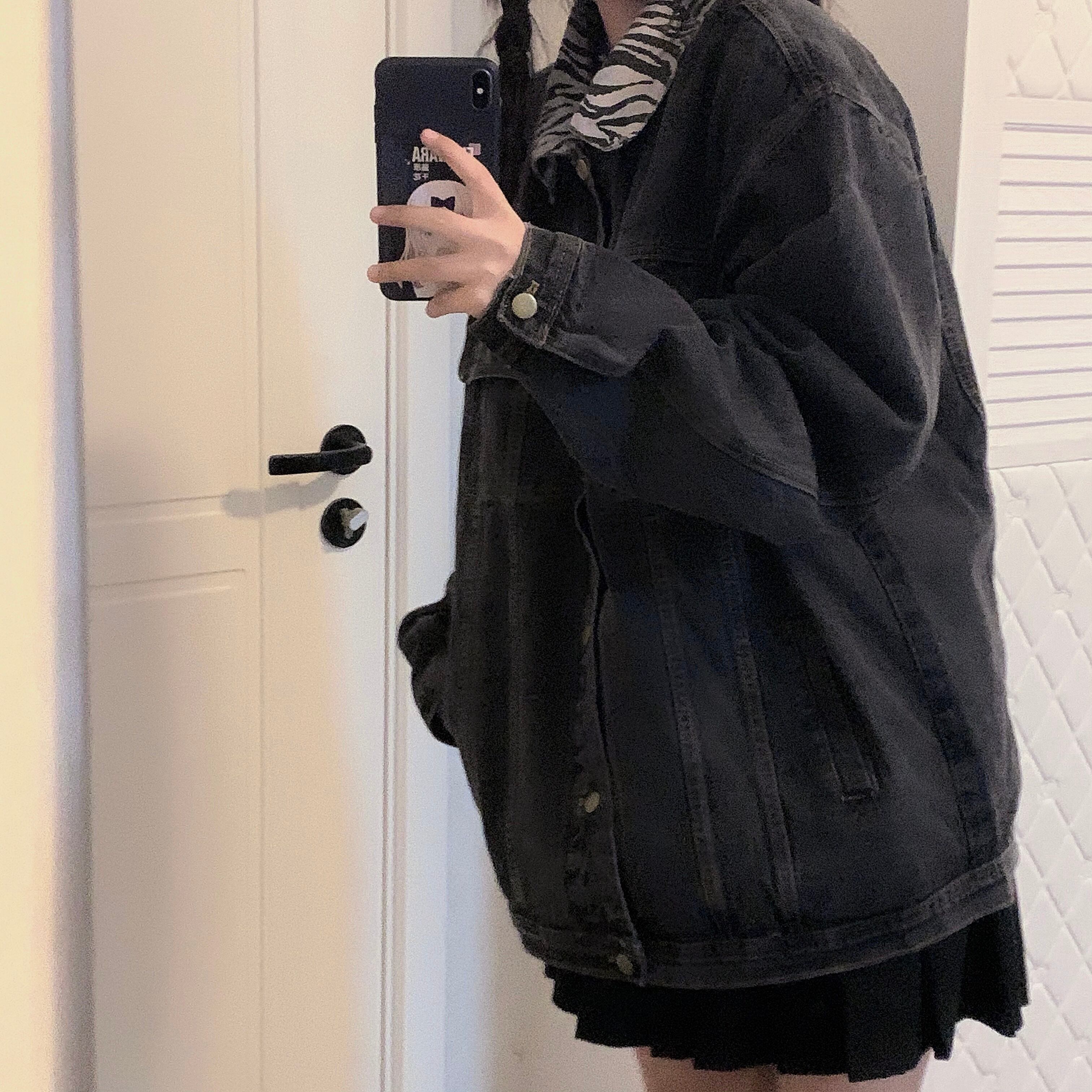オータムスタンダードレオパードプリント柄ジャケット ブラックルーズトップス ロング レトロ 秋物 Brother_is_Style6754102161