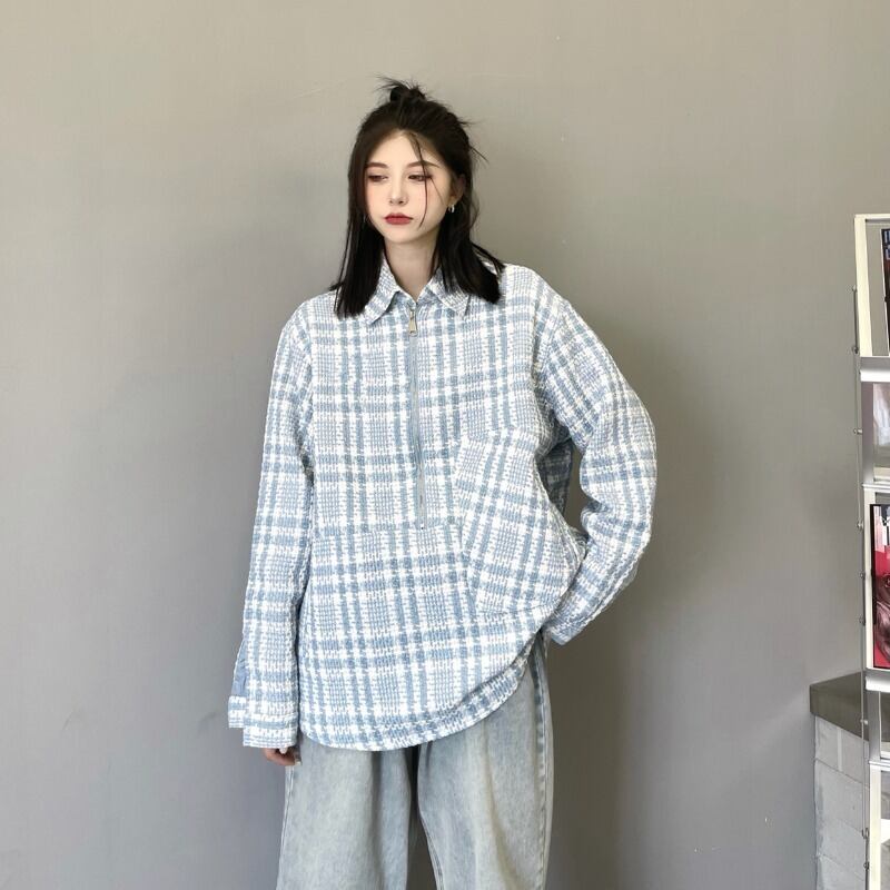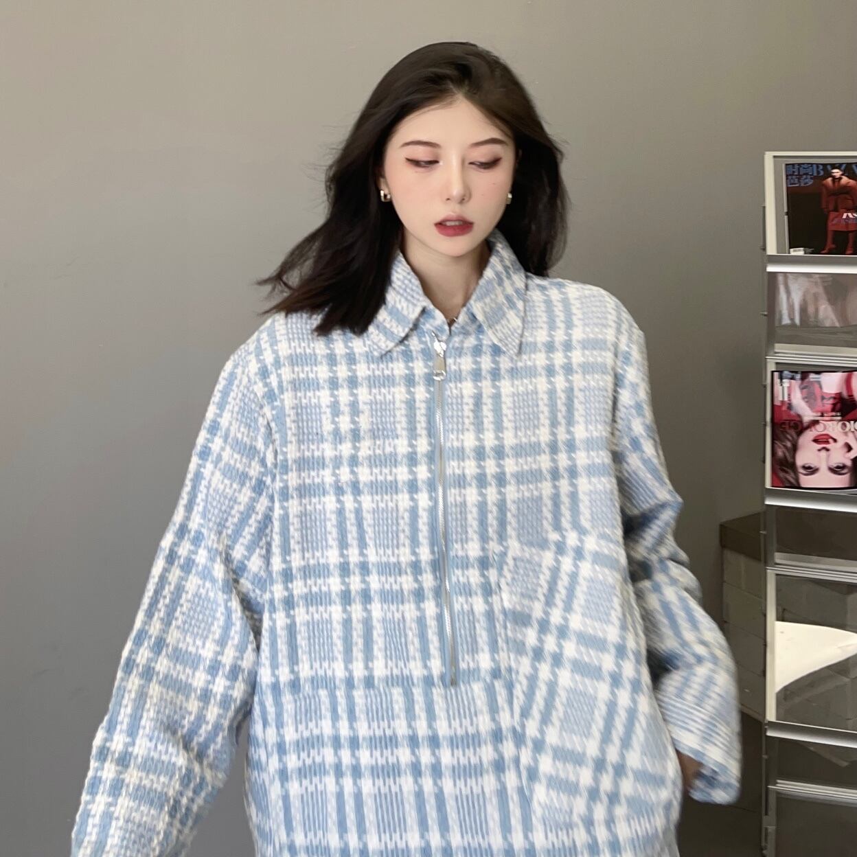 オータムスタイルブルージッパーニットセーター コート ルーズプルオーバー トップス ロング 大人ガーリー スウィート キュート カジュアル 秋物 Brother_is_Style11171252923