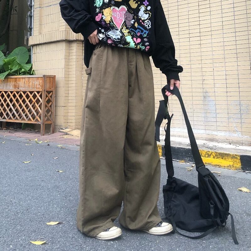 オータムスタンダードカーキオーバーオール カジュアルパンツ ルーズハイウェストウェスト薄手ワイドレッグレディース レトロ 秋物 ワイドパンツ Brother_is_Style43726583713