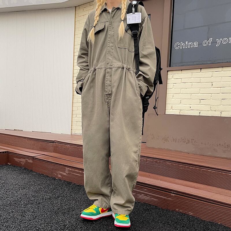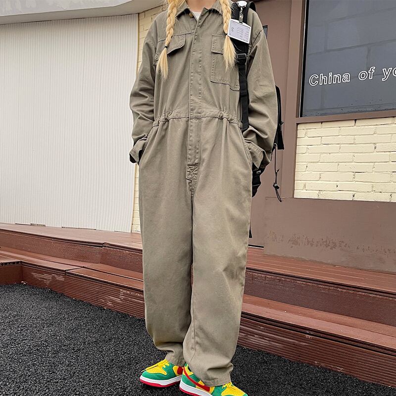 ジャンプスーツ オールインワン オータムスタンダードワンピースカジュアルパンツ ルーズハイウェストウェスト薄手 レトロ 秋物 Brother_is_Style81979503928
