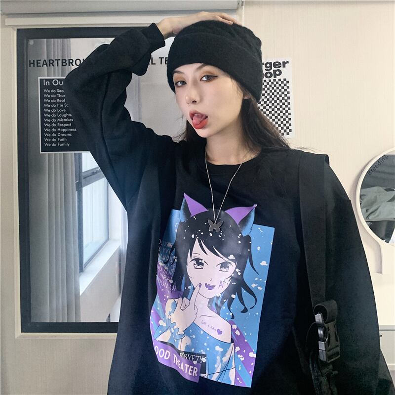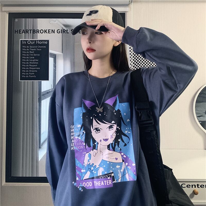 プリントベルベットフードセーター ルーズシャツ ロング オータム 秋物 ウィンター 冬物 Brother_is_Style18434730433