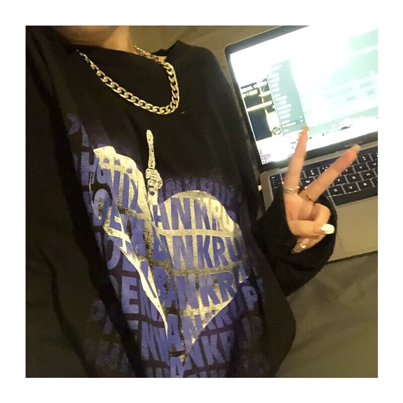 オータムプリントTシャツ シャツ ブラックルーズトップス ロング コットン 秋物 Brother_is_Style21185447595
