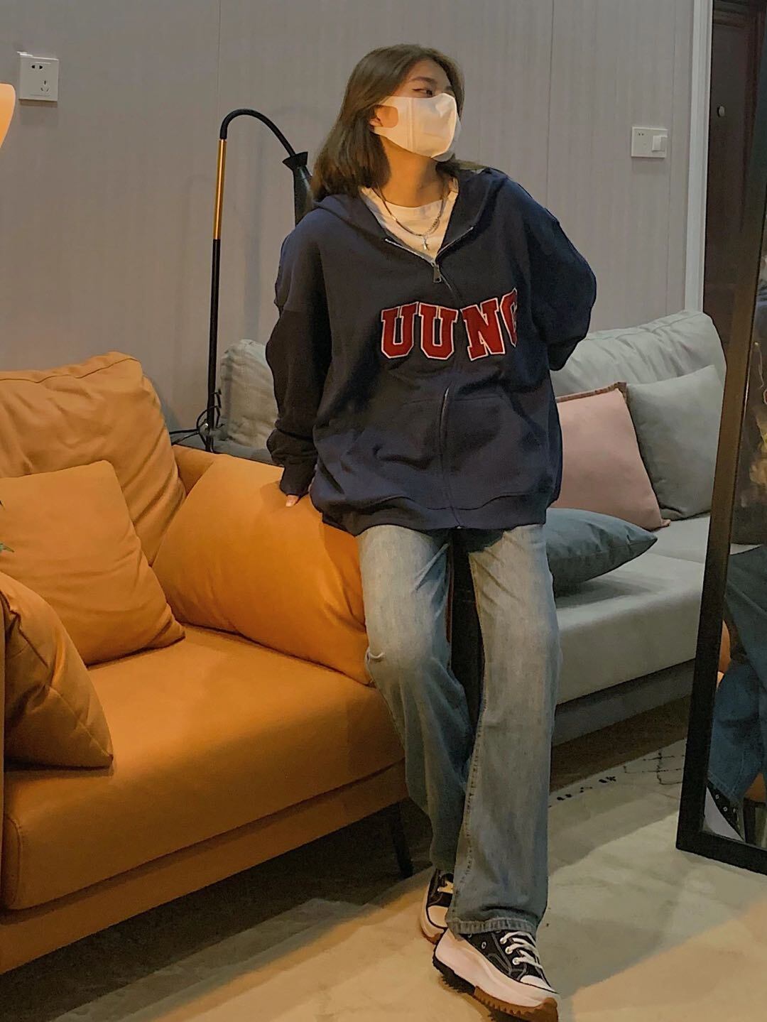 オータムセーター コート ルーズスタンダードネイビーブルーフードトップス レディース レトロ 秋物 Brother_is_Style86721235395