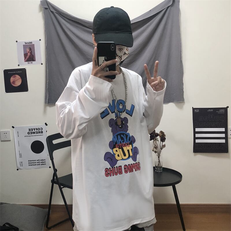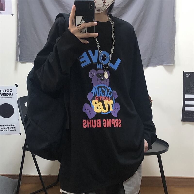 オータムスタンダードプリントTシャツ シャツ ルーズトップス ロング レトロ かわいい 秋物 Brother_is_Style82492572834