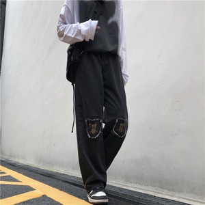 パンツ オータムスタンダード刺繍ハイウェストジーンズ ブラックルーズ レトロ 秋物 ステッチ Brother_is_Style9572672488