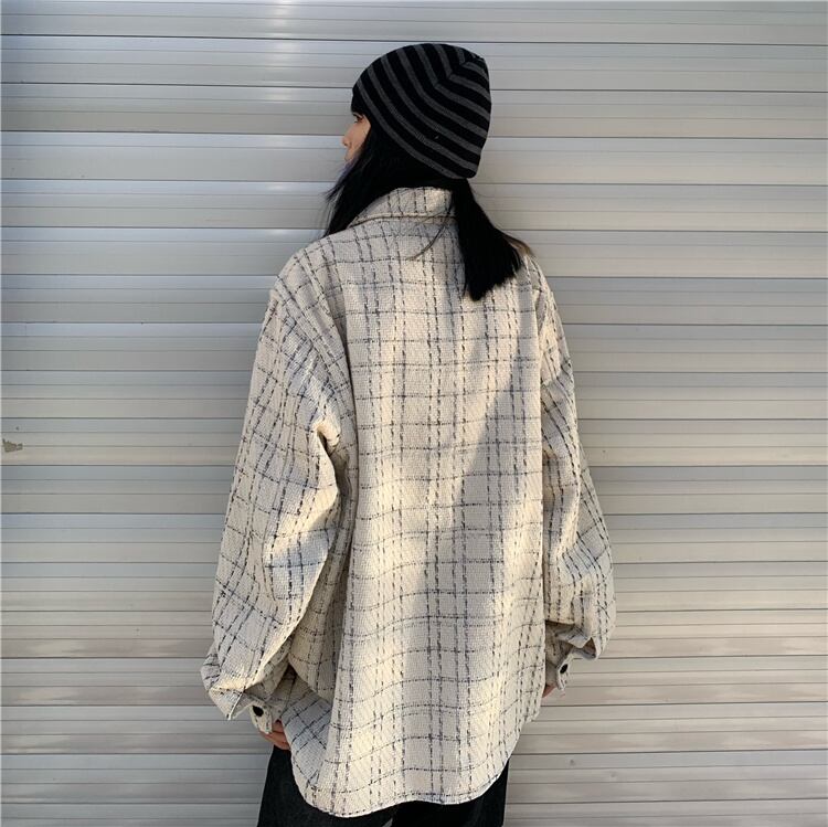 シャツ オータムスタイルスタンダード格子柄ジャケット ルーズトップス ロング レトロ 秋物 Brother_is_Style80539163408
