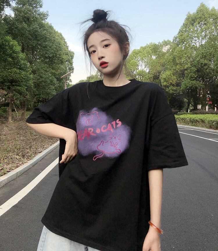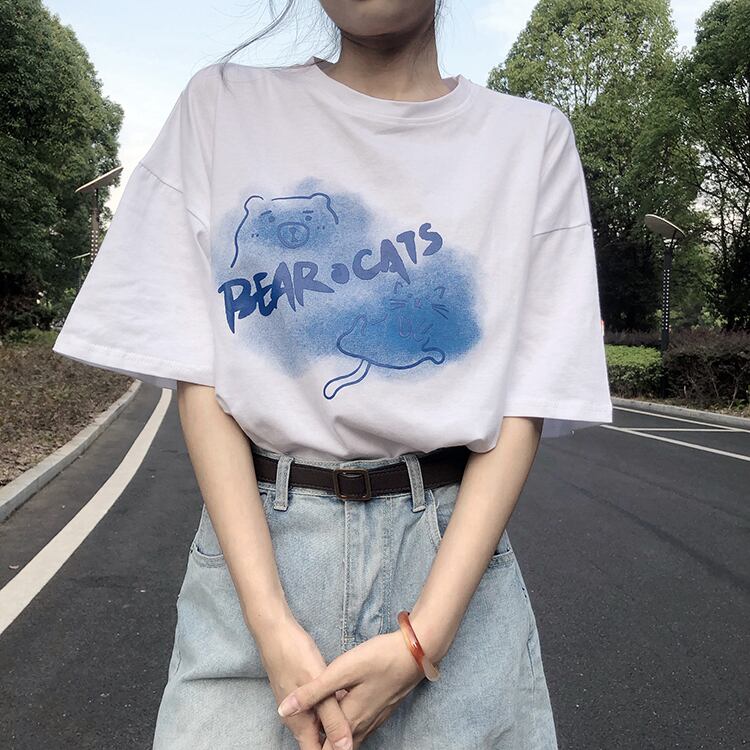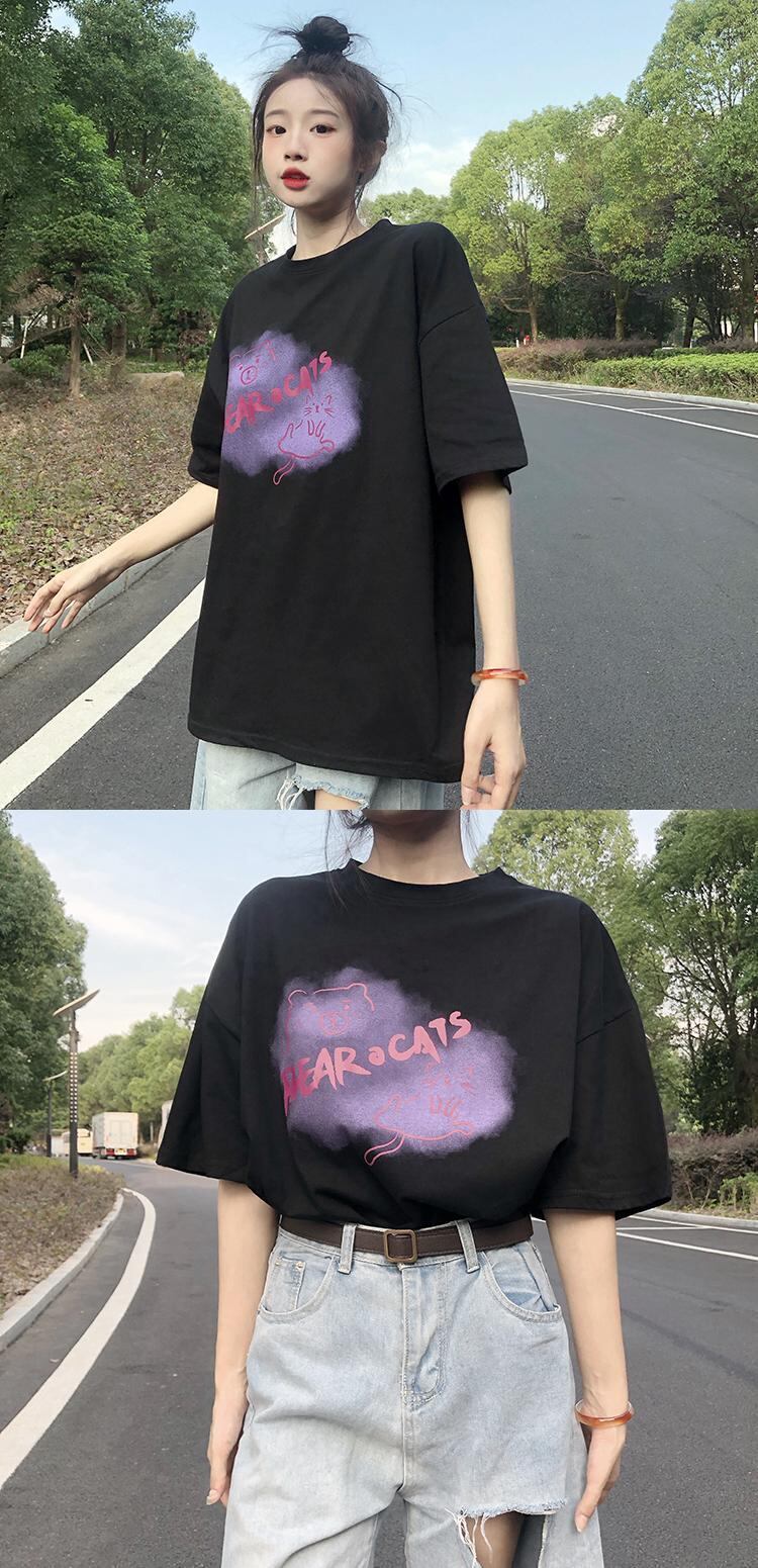 サマープリントトップス ルーズホワイトTシャツ コットン 夏物 ピュア Brother_is_Style36764578723
