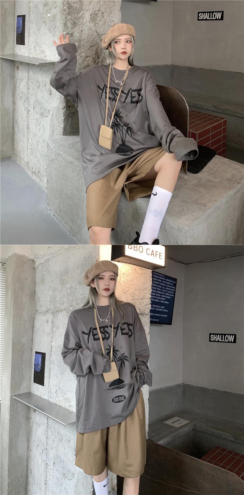 オータムプリントTシャツ シャツ ルーズトップス ロング ストリート 秋物 Brother_is_Style10383973144