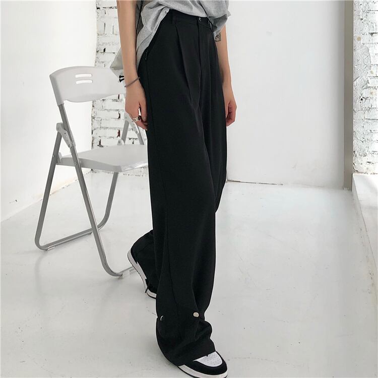 パンツ サマーダークボタンカジュアルルーズハイウェストウェスト薄手ワイドレッグ 夏物 ワイドパンツ Brother_is_Style27041268226