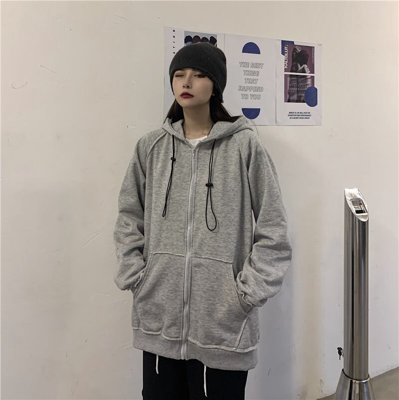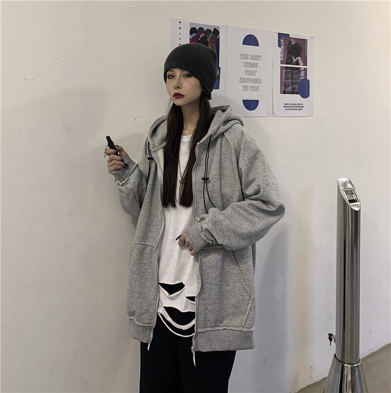 オータムスタンダードグレーベルベットフードセーター コート ルーズカーディガントップス レディース ロング レトロ 秋物 Brother_is_Style30942667661