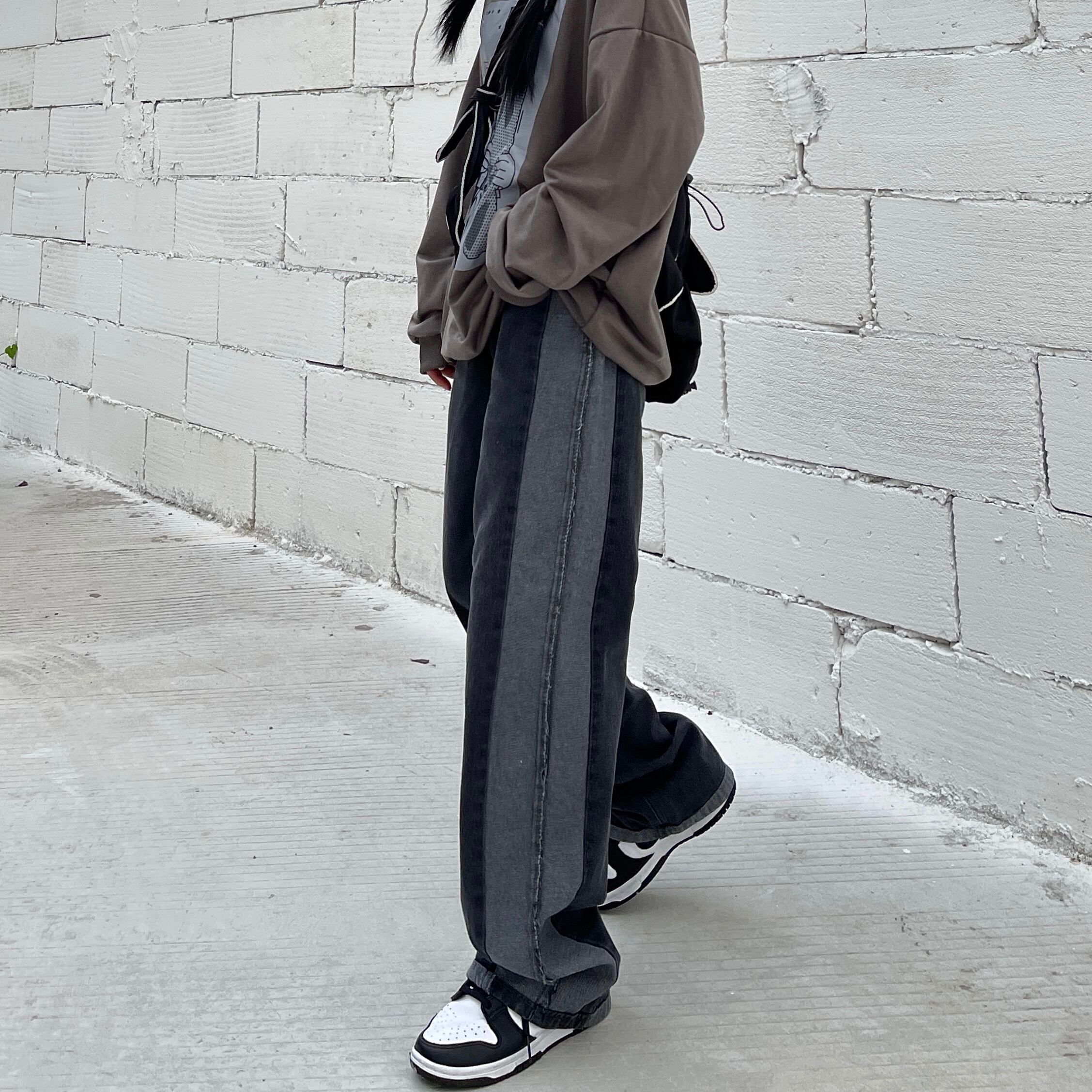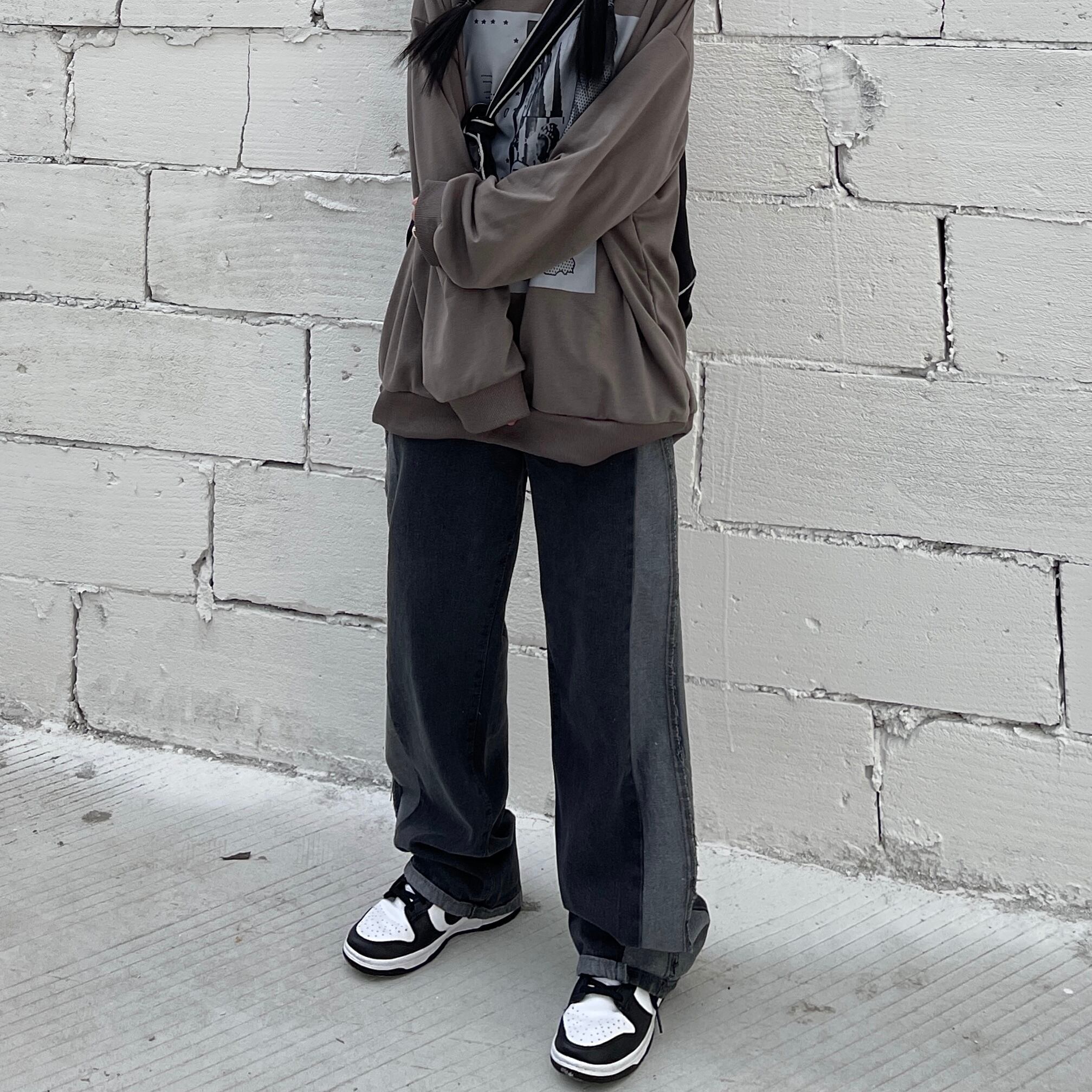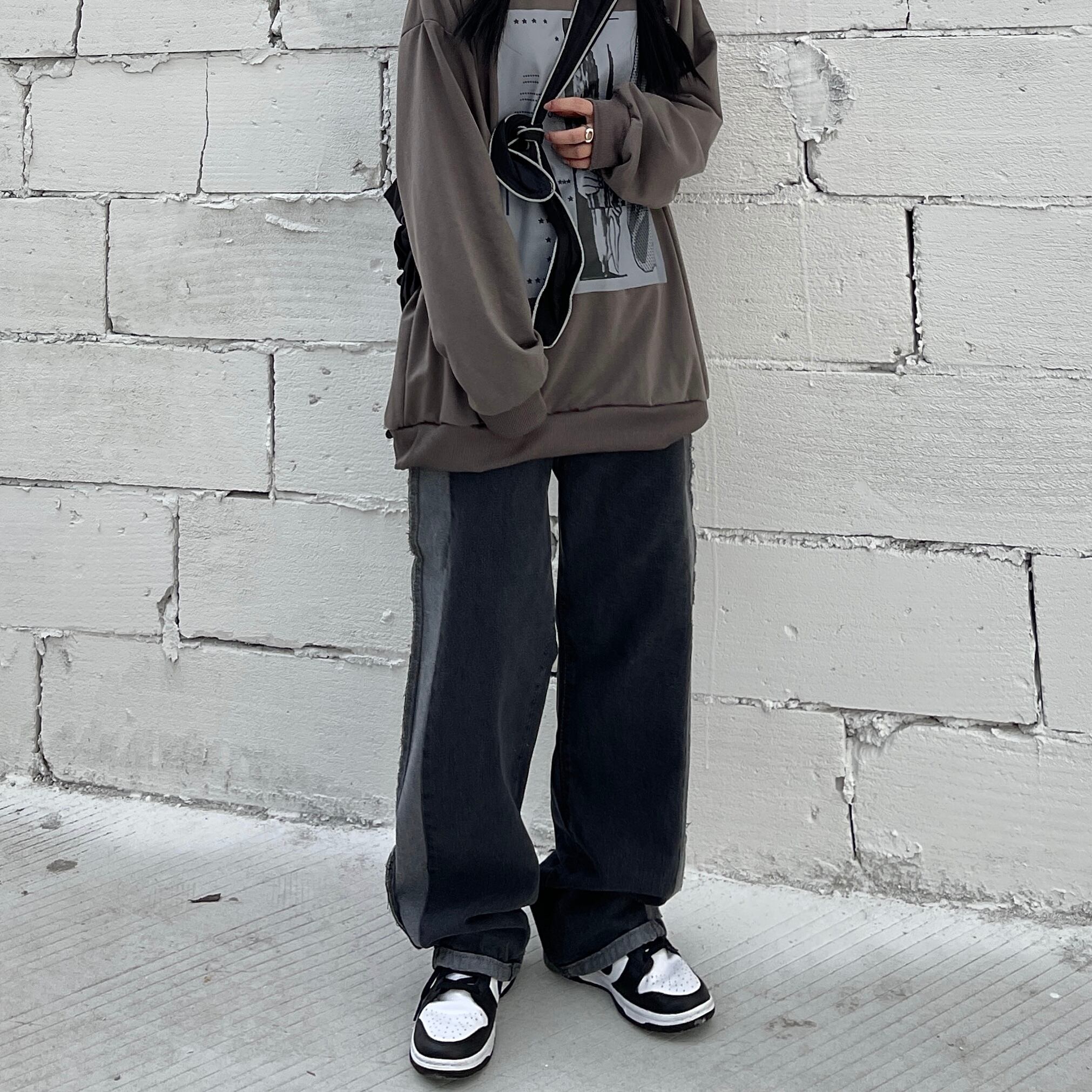 パンツ オータムスタンダードカラージーンズ ルーズハイウェスト薄手 レトロ 秋物 Brother_is_Style93477423085