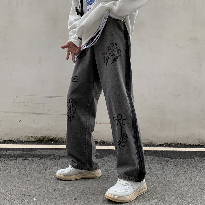 パンツ オータムプリント柄ジーンズ ルーズハイウェストウェスト薄手ワイドレッグ ストリート 秋物 ワイドパンツ Brother_is_Style24993951890