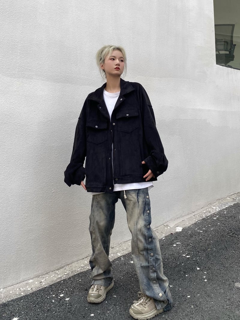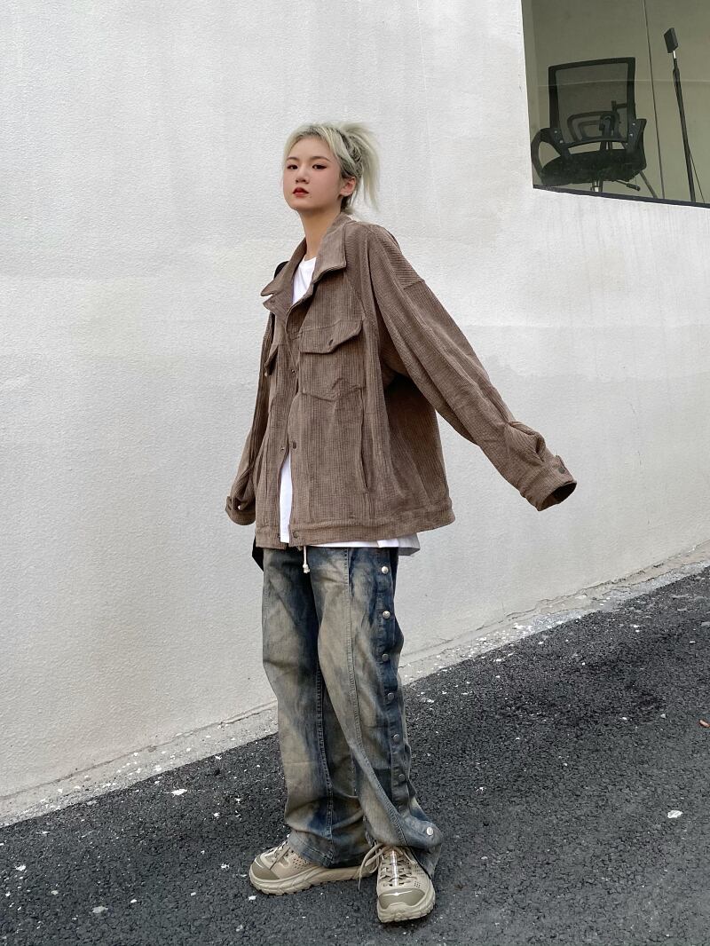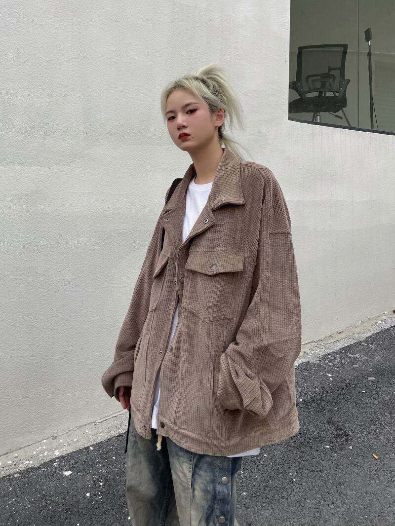 スタイルスタンダードコーデュロイジャケット ルーズカジュアルトップス レディース ロング レトロ Brother_is_Style6767254445