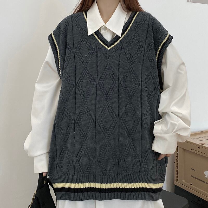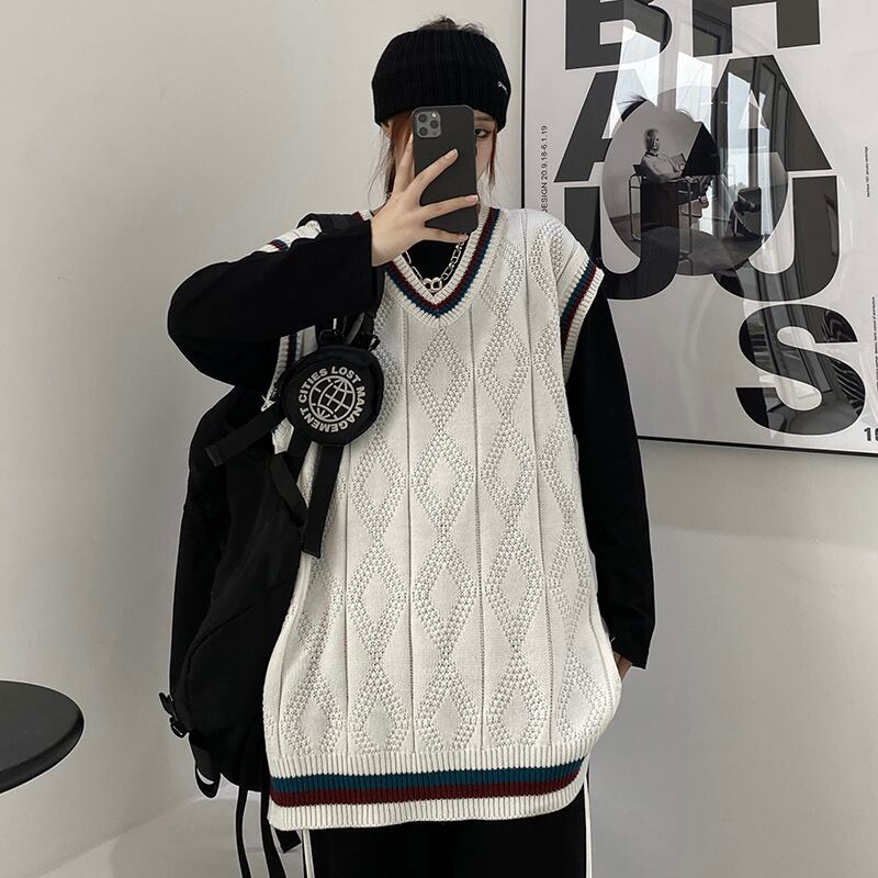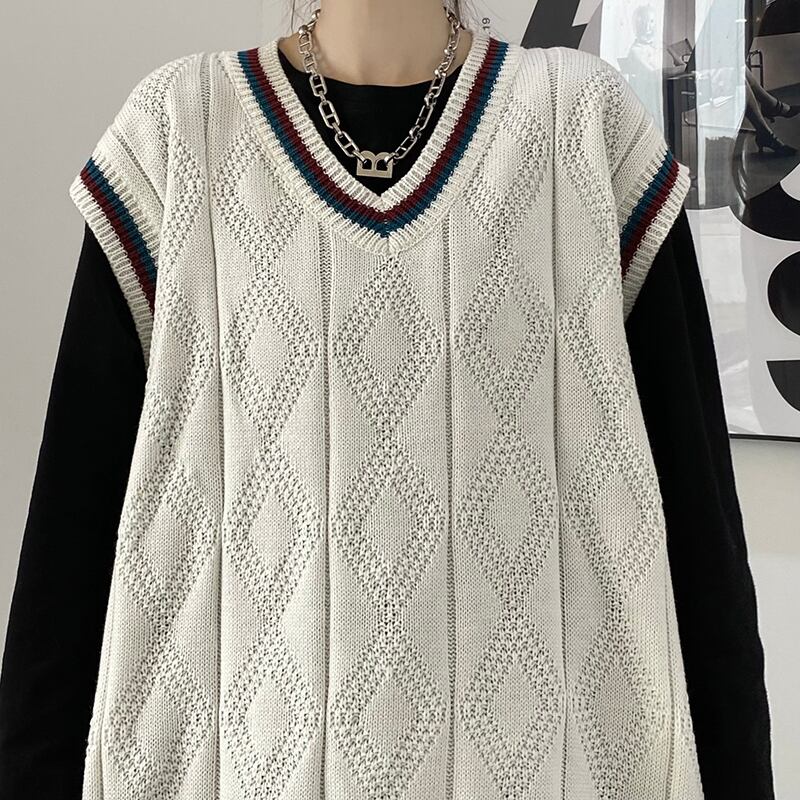 オータムスタイルスタンダードノースリーブニットセーター ジャケット ルーズトップス レトロ 秋物 Brother_is_Style89336726521