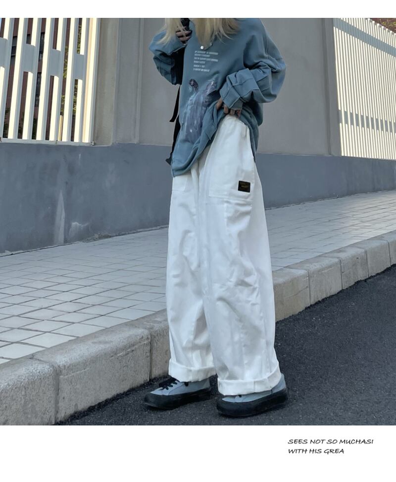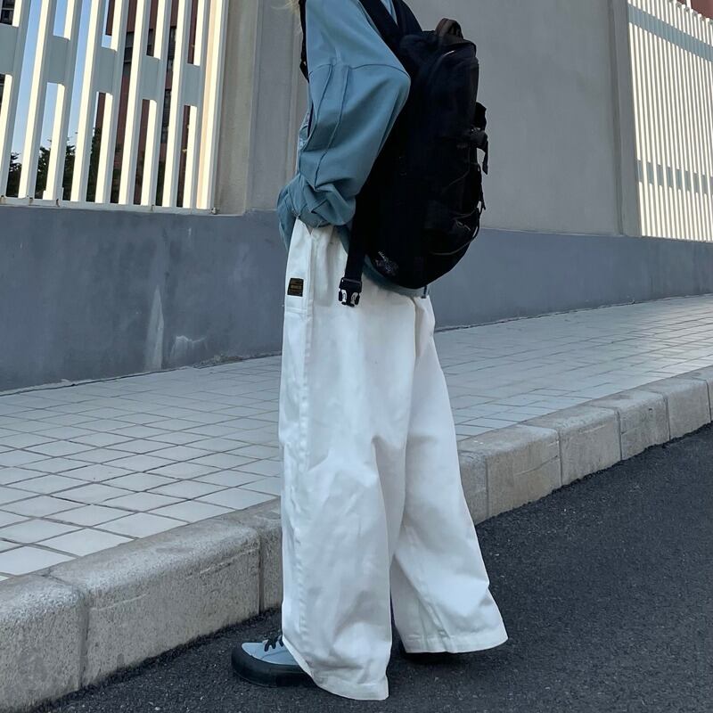 パンツ オータムスタイルスタンダードホワイトカジュアルルーズハイウェストウェスト薄手ワイドレッグ レトロ 秋物 ワイドパンツ Brother_is_Style90726487591