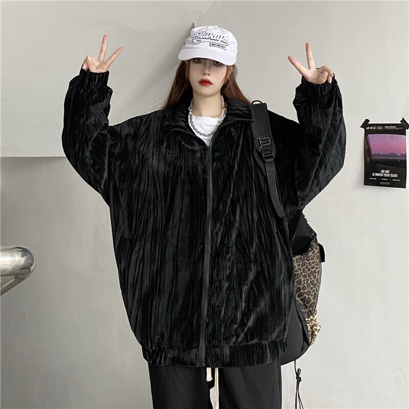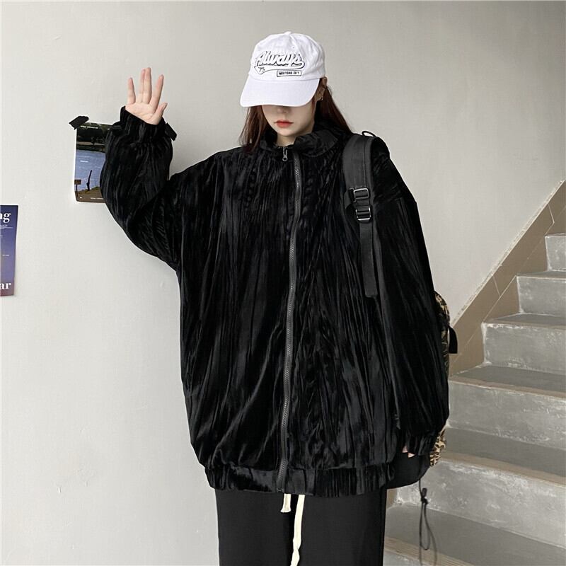 オータムスタンダードベルベットジャケット ルーズトップス ロング レトロ 秋物 Brother_is_Style44184923489