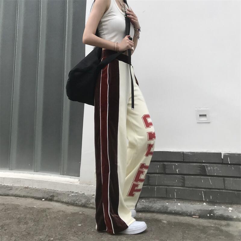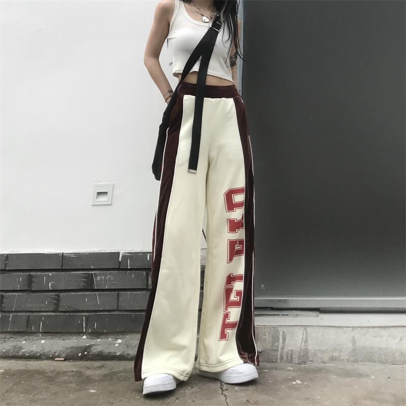 パンツ オータムプリントカジュアルルーズハイウェストウェストワイドレッグ ストリート 秋物 ワイドパンツ ヨーロピアン Brother_is_Style614769185