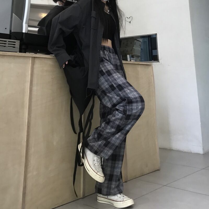 パンツ オータムスタンダード格子柄カジュアルルーズハイウェストウェスト薄手ワイドレッグ レトロ 秋物 ワイドパンツ Brother_is_Style52323068093