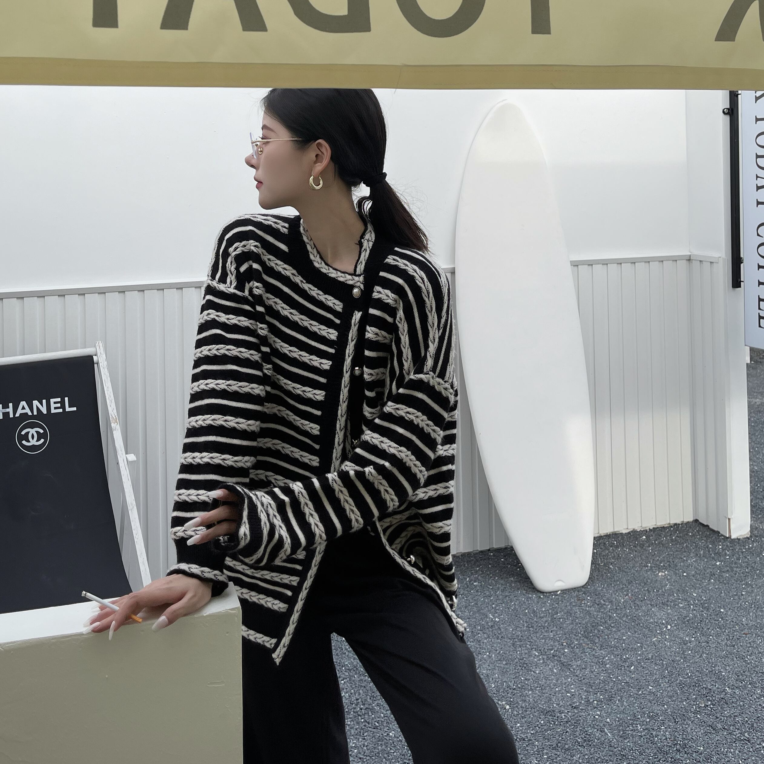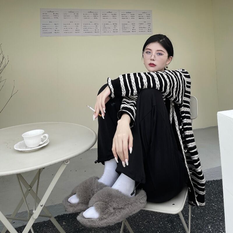 オータムストライプニットセーター カーディガンジャケット ルーズトップス レディース ロング 秋物 Brother_is_Style94448232334
