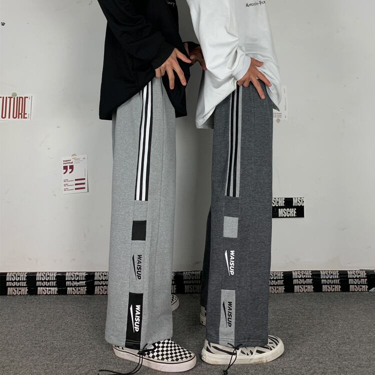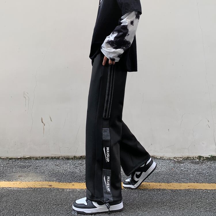 オータムプリントグレーカジュアルパンツ ルーズハイウェストウェスト ストリート 秋物 Brother_is_Style62854243962