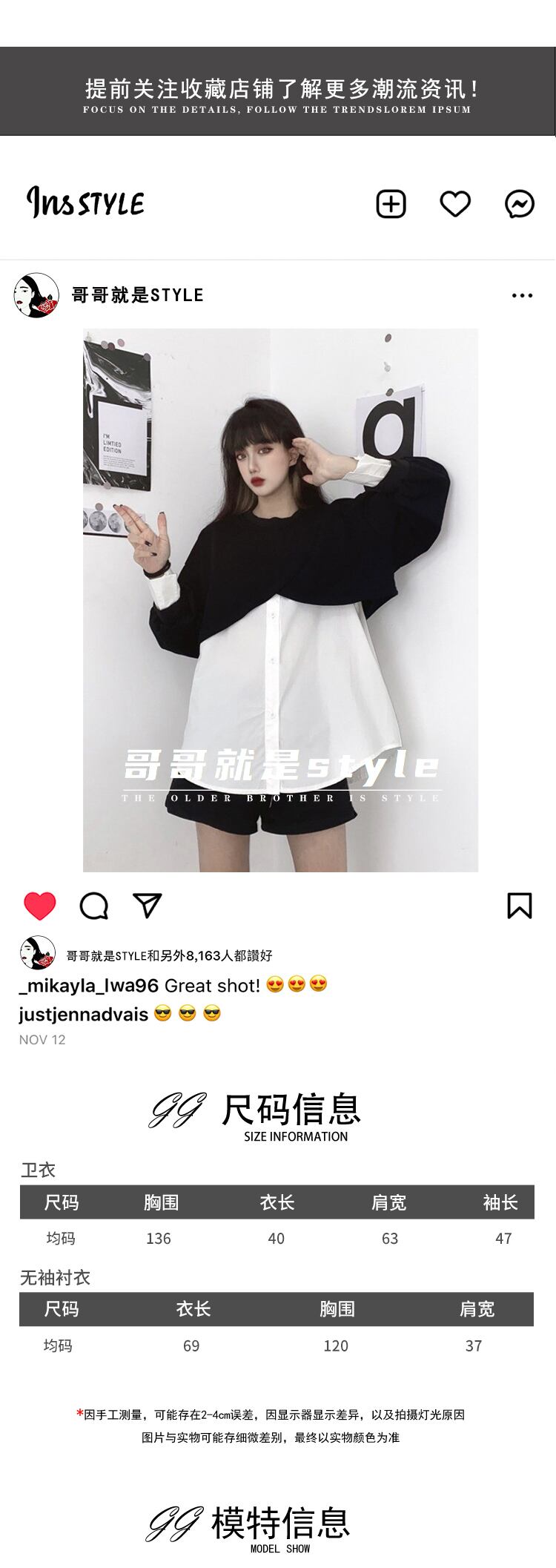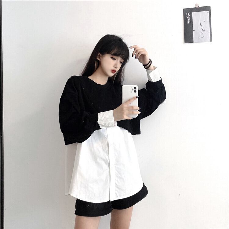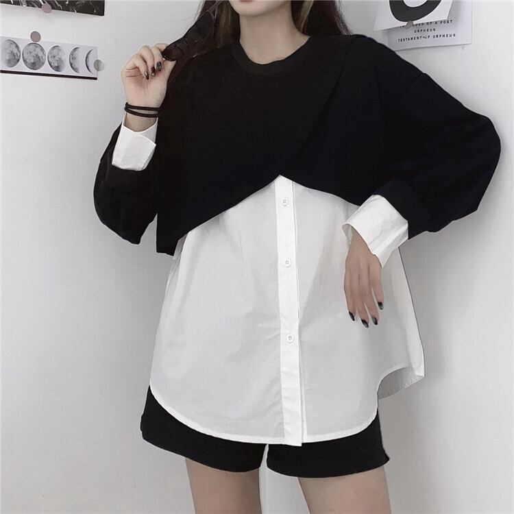 オータムノースリーブホワイトシャツ ルーズショートセーター コート 秋物 Brother_is_Style36025948031