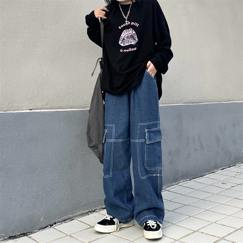 パンツ オータムラインジーンズ ハイウェストウェストルーズオーバーオール ストリート 秋物 Brother_is_Style73840306420