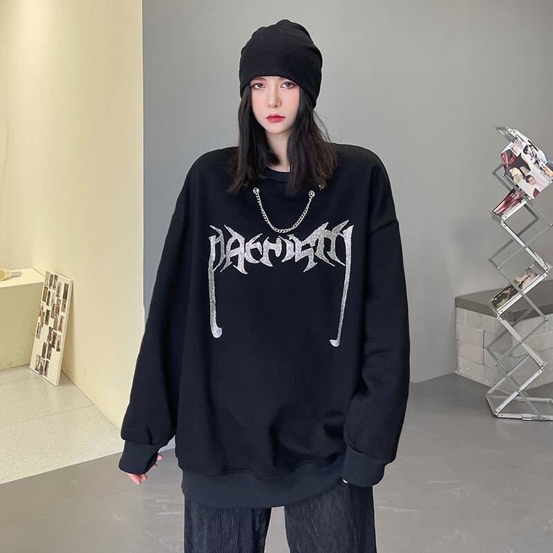 オータムラインストーンフードセーター コート ルーズトップス レディース ロング 秋物 Brother_is_Style63529259055