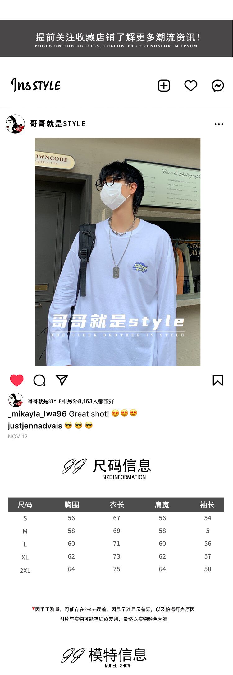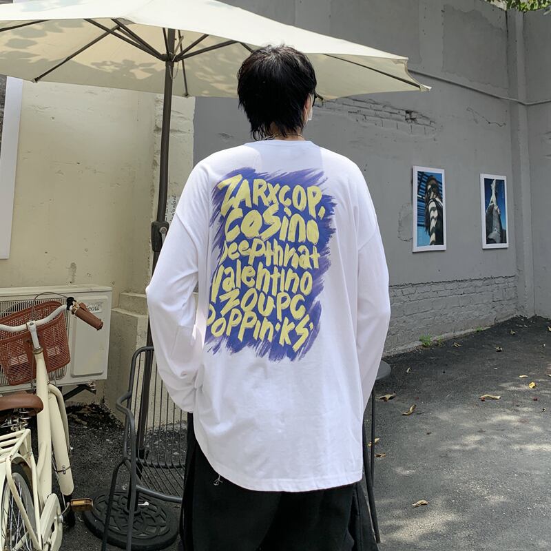 オータムスタンダードプリントTシャツ ルーズラウンドネックトップス レディース ロング レトロ 秋物 Oネック Brother_is_Style53507773446