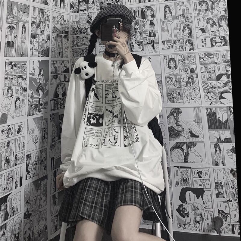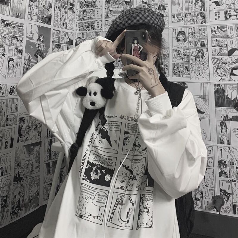 オータムスタイルプリント柄ホワイトセーター コート ルーズプルオーバー トップス レディース ロング 秋物 Brother_is_Style414436129