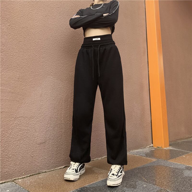 パンツ オータムブラックハイウェストギャザーカジュアルルーズ 秋物 Brother_is_Style27894977476