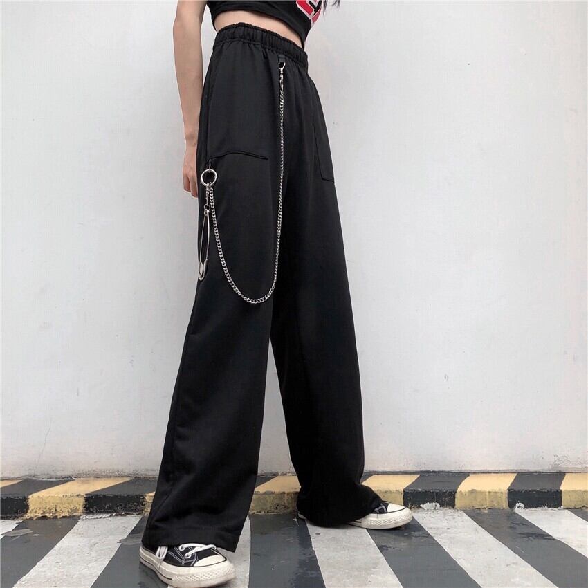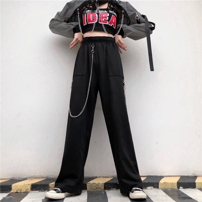 ブラックパンツ オータムチェーン カジュアルルーズハイウェストウェストワイドレッグ ストリート 秋物 ワイドパンツ Brother_is_Style10233146689