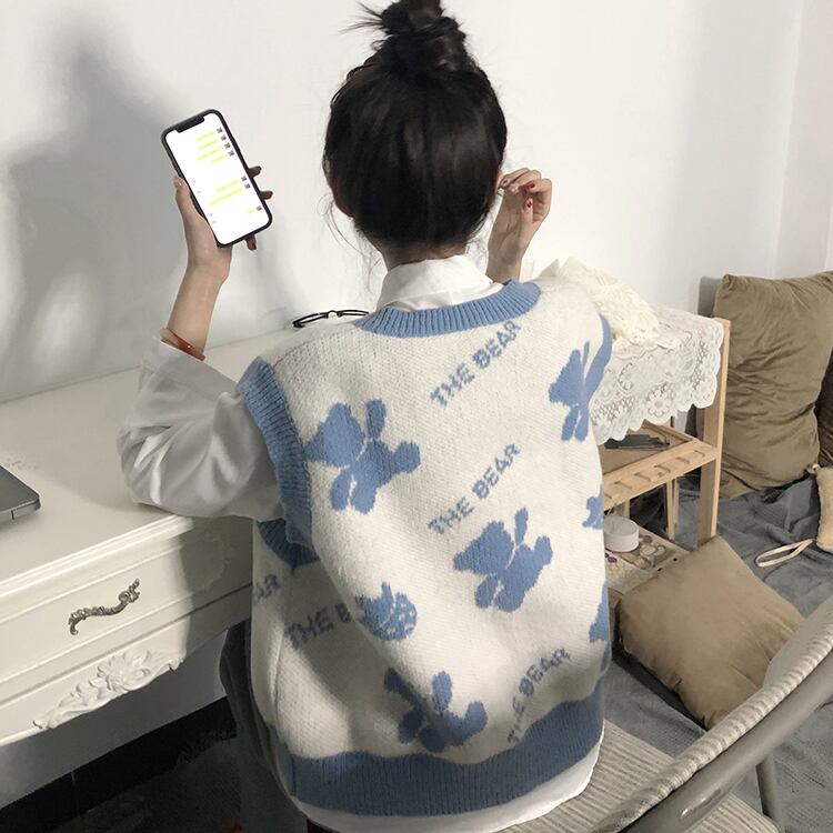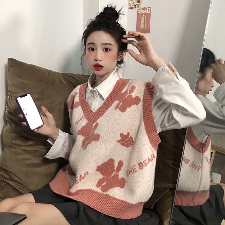 色:ピンクベアジャカードベスト,ブルーベアジャカードベスト,白インナーシャツ